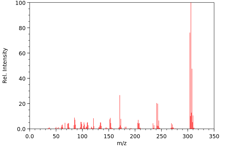 Thirteen chlorinated compounds were detected in bile collected for 48 hr from female Sprague Dawley rats given a single oral dose of 678 ug TCDF (79.4% pure)/kg bw. The four major metabolites considered to originate from TCDF were trichloromethoxy-dibenzofuran, two trichlorodimethoxy-dibenzofurans, and tetrachloromethoxydibenzofuran. The remaining nine metabolites, detected in minute amounts, originated most likely from contaminating PCDFs (1% triCDF, 8.4% tetraCDFs, 11.2% pentaCDFs).