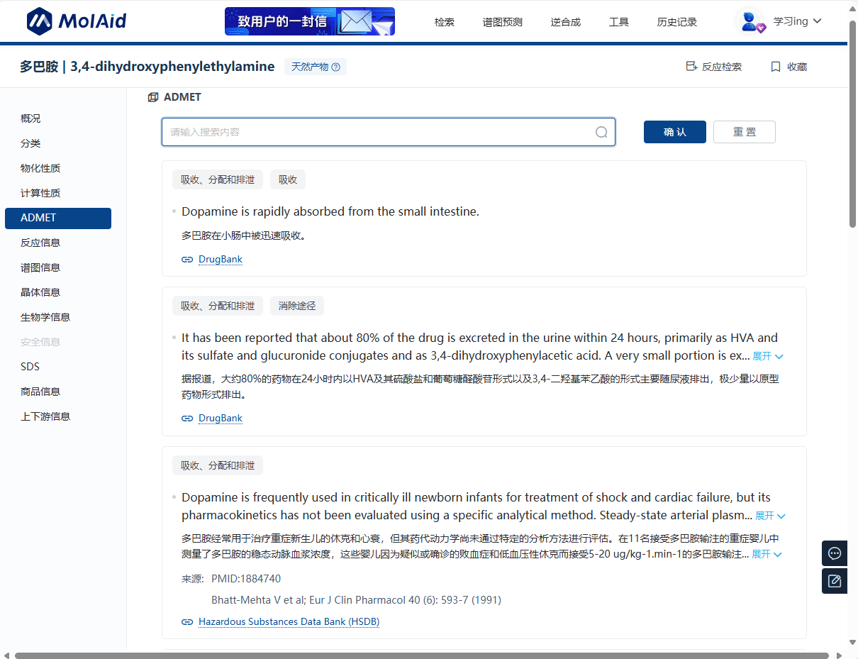 除了生物合成途径信息,摩熵化学数据库还提供了化合物的合成反应方法,为研究者设计反应路线提供了便利。