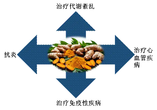 姜黄中的主要成分为姜黄素以及类姜黄素。姜黄素类作为一种酚类化合物,其药理作用主要体现在抗炎、保护心脑血管、治疗代谢紊乱等领域,见图3。