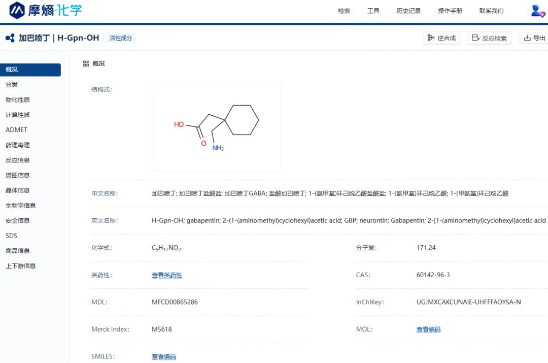 加巴喷丁信息 图片来源:摩熵化学(MolAid)