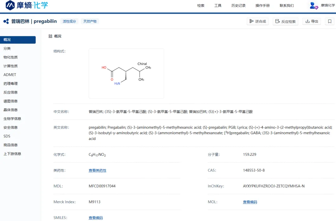 普瑞巴林信息 图片来源:摩熵化学(MolAid)