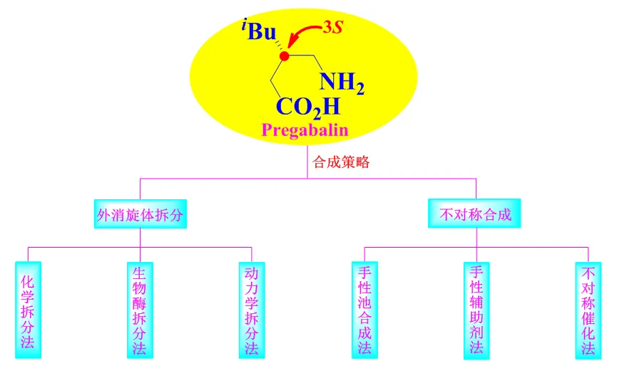 普瑞巴林的合成关键在于 C-3 位手性中心的构建,目前文献报道的合成策略主要分为外消旋体拆分法和不对称合成法。