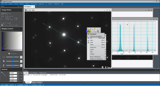 1.打开一张“.dm3或者.dm4”格式的高倍率TEM照片,在照片界面点击鼠标右键,在弹窗中左键选择如图所示图标。