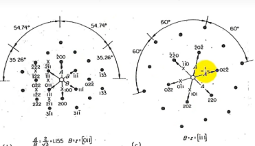 8.大概判断一下是属于什么结构后,找到对应结构菊池线,确定刚才量出的长度的比值是否符合。例如本照片大概判断为[111]材料,则可直接从[111]开始对比。