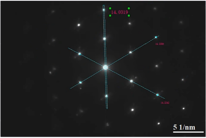 注意:因为TEM电子衍射花样中晶面间距的测量并不是十分准确,因此单纯通过TEM电子衍射花样判断晶体所属晶系是不够准确的,需要与Jade软件相配合检索才能得出准确结果。