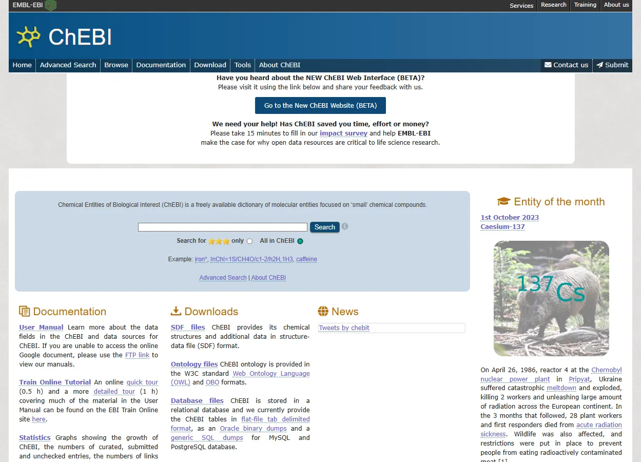 在生物化学和药物研发等领域的研究中,获取准确且全面的化学实体信息至关重要。ChEBI(Chemical Entities of Biological Interest)数据库作为一个专注于生物相关化学实体的重要资源,其数据广泛应用于代谢通路分析、药物设计及化学信息学研究,为科研工作者提供了丰富而有价值的数据。今天,我们就来深入了解一下 ChEBI 数据库及其使用方法。