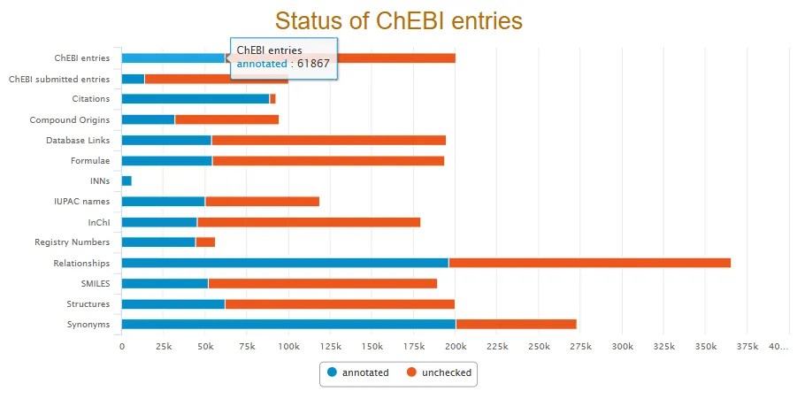 它不仅包含分子实体,还涉及分子实体的基团以及实体类别。该数据库目前收录了注释数据超 61,000 个条目,每个条目都在本体中进行了分类,并被赋予多种注释,包括(若相关)化学结构、数据库交叉引用、同义词以及文献引用等信息,其数据来源广泛且经过高标准人工注释,使用国际纯粹与应用化学联合会(IUPAC)以及国际生物化学与分子生物学联盟命名委员会(NC-IUBMB)认可的命名法、符号和术语,确保了数据的权威性与准确性。