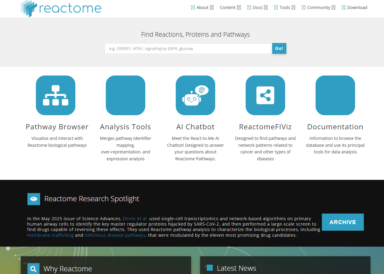 在生命科学研究中,解析生物通路的动态过程是理解生命活动机制的关键。Reactome 数据库作为一个专注于生物通路注释与分析的权威资源,为科研人员提供了系统且详细的通路信息。作为生物信息学分析中常用的通路数据库之一,Reactome以其高质量的人工注释和清晰的层级结构受到研究人员青睐。本文将详细介绍Reactome数据库的功能特点及实用操作指南。