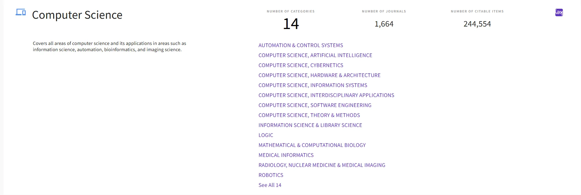 先明确研究领域(如 “计算机科学 Computer Science - 人工智能 COMPUTER SCIENCE, ARTIFICIAL INTELLIGENCE”),在 JCR 数据库(可通过 WOS 直接跳转)中筛选该领域期刊,重点关注 “分区”“影响因子”“审稿周期” 三个指标: