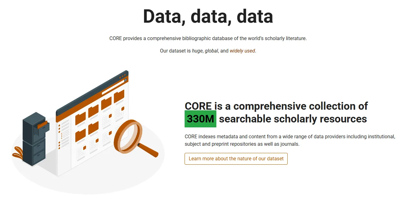可能很多人没听过它,但在学术圈里,CORE 是个挺实用的文献平台。它由英国帝国理工学院联合全球多所高校、研究机构共同搭建,是开放获取的文献聚合平台,目前已经收录了超过 3300 万篇学术文献,涵盖自然科学、工程技术、医学、社会科学、人文艺术等几乎所有学科。