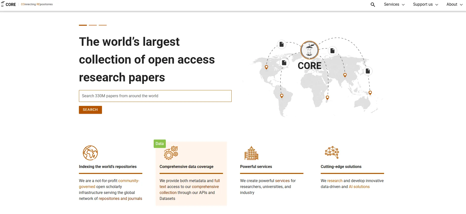 首先,CORE数据库作为当今世界上最大的开放获取文献资源平台,凭借其惊人的2.8亿篇文献储备量,使科研人员无需再受限于高昂的订阅费用,即可轻触指尖,畅游浩瀚的学术海洋。