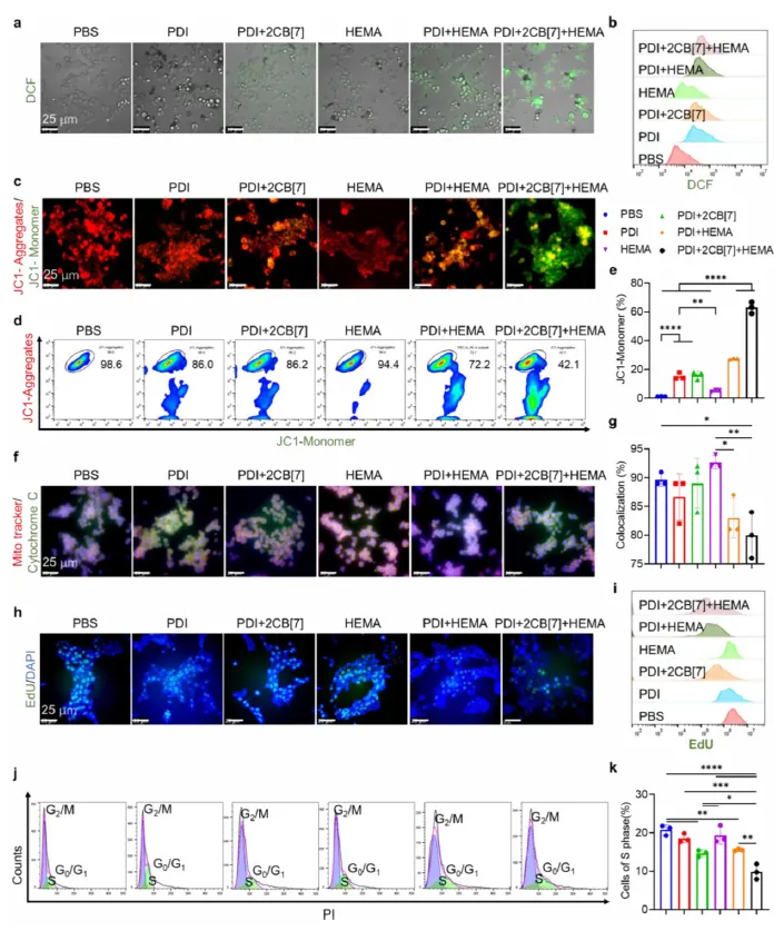 这些实验结果表明,PDI + 2CB [7] 引发的细胞内聚合反应从多个关键层面精准地破坏了肿瘤细胞的正常生理功能,有效地抑制了肿瘤细胞的生长和增殖,为肿瘤治疗提供了一种全新的、极具潜力的策略。