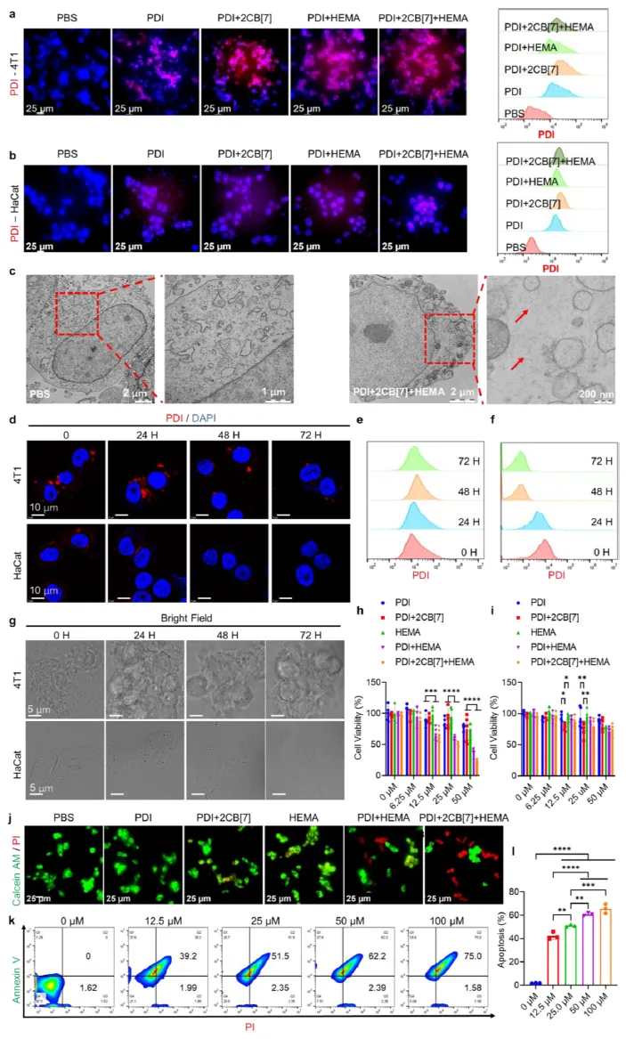 这些实验结果相互印证,从不同层面、不同角度确凿地证明了 PDI + 2CB [7] 在肿瘤细胞内能够成功引发 HEMA 聚合的事实,为后续对该体系生物学效应的研究奠定了坚实的基础。