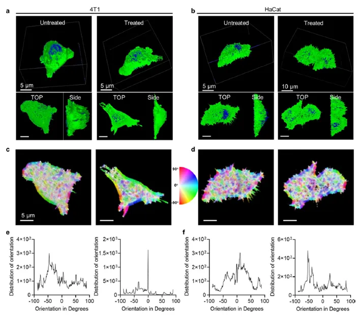 通过免疫荧光染色技术,研究人员还观察到细胞内肌动蛋白的分布发生了显著改变。肌动蛋白是细胞骨架的重要组成部分,它对于维持细胞的形态、运动和分裂等生理功能起着关键作用。肌动蛋白分布的改变意味着细胞骨架受到了损伤,细胞的形态和运动能力受到限制。肿瘤细胞的迁移能力是其侵袭和转移的重要基础,细胞骨架的损伤使得肿瘤细胞的迁移能力大大降低,从而在一定程度上抑制了肿瘤的扩散。