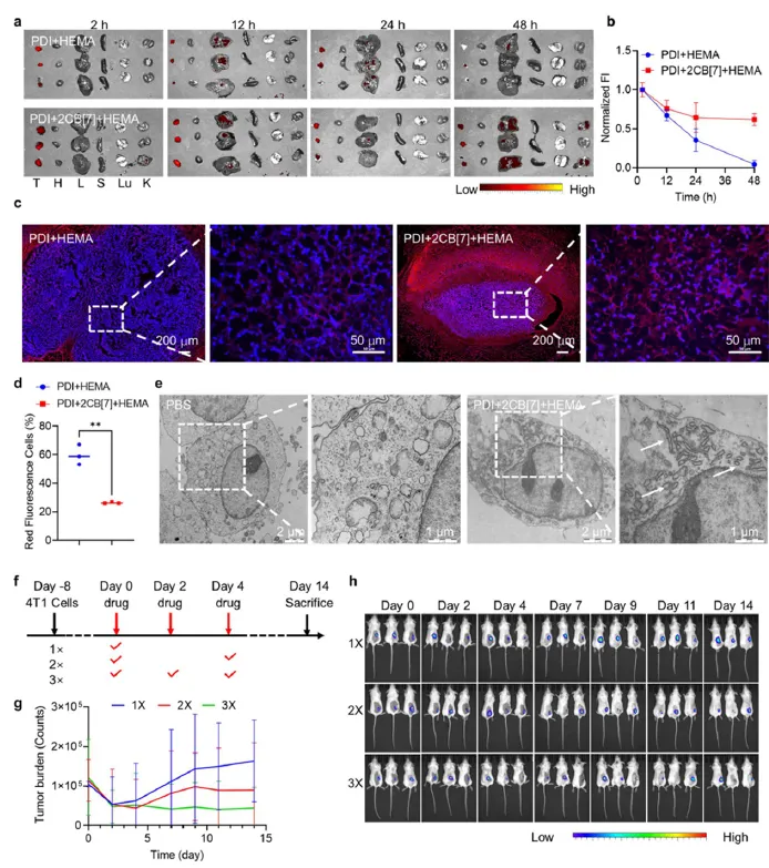 实验结果令人鼓舞,在肿瘤组织中,研究人员清晰地观察到了持续的聚合反应。这表明该超分子体系在进入肿瘤组织后,能够稳定地发挥其引发聚合反应的功能,持续对肿瘤细胞造成损伤。同时,该体系在肿瘤组织内能够长时间保留,这一特性使得治疗效果得以持续发挥,不断地抑制肿瘤的生长。