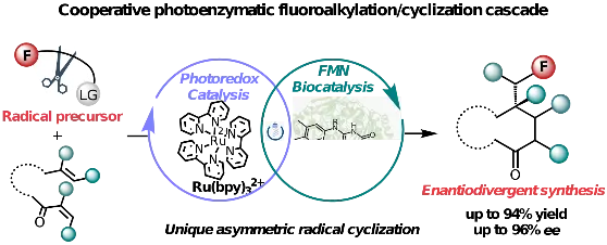 (图2)光酶协同催化的氟烷基化环化级联反应构建手性氟代环酮类化合物