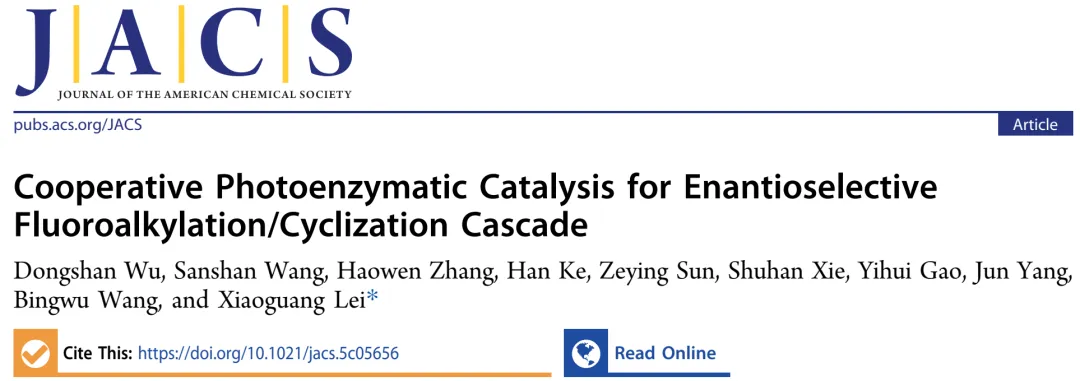 Dongshan Wu, Sanshan Wang, Haowen Zhang, Han Ke, Zeying Sun, Shuhan Xie, Yihui Gao, Jun Yang, Bingwu Wang, Xiaoguang Lei* “Cooperative photoenzymatic catalysis for enantioselective fluoroalkylation/cyclization cascade” J. Am. Chem. Soc. 2025, doi: 10.1021/jacs.5c05656