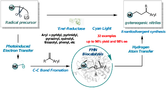 (图3)光酶催化的氰烷基化反应构建手性腈类化合物
