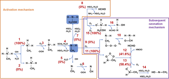 图6 ·OH-硫酸盐的协同的NH3CH3+臭氧化机制