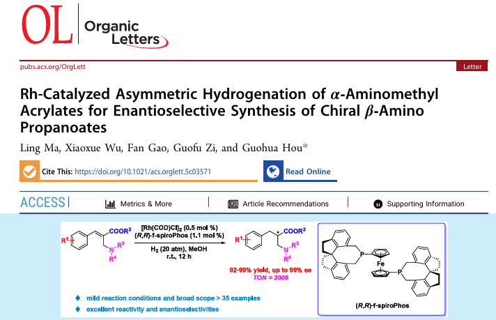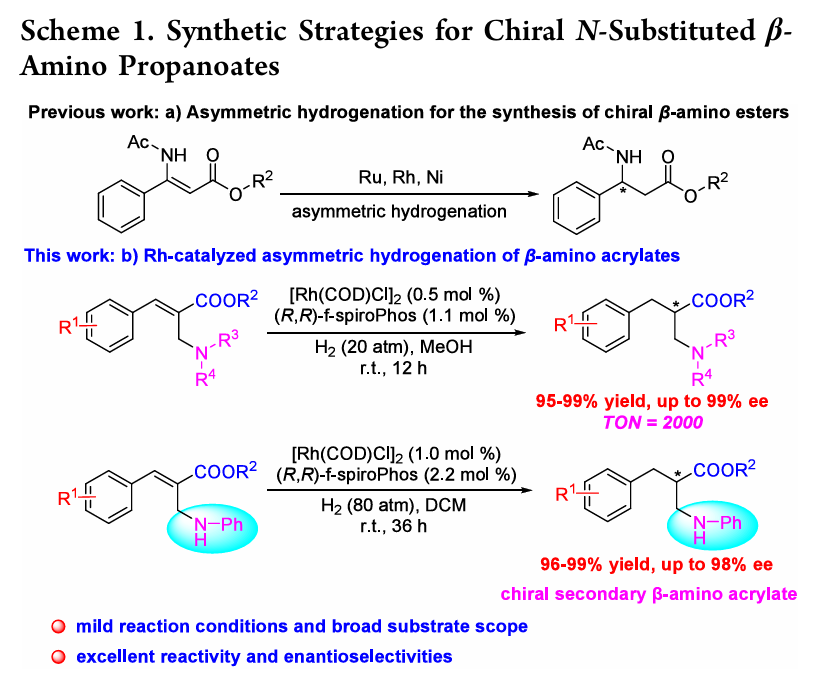 题目:Rh-Catalyzed Asymmetric Hydrogenation of α-Aminomethyl Acrylates for Enantioselective Synthesis of Chiral β-Amino Propanoates