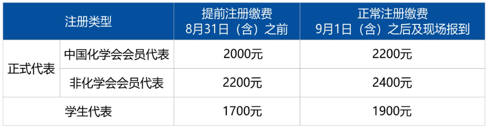 2、注册为中国化学会会员/学生代表类型的代表现场需出示【带照片的有效会员证】或【带照片的有效学生证】,否则不能享受注册费优惠,现场需补缴注册费。学生代表注册缴费不区分中国化学会会员与非化学会会员,不享受会员注册优惠。