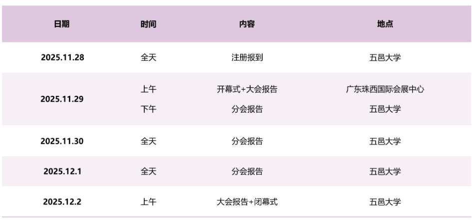 2025年11月28日报到当天,会务组将在广州白云机场、广州南站安排会议班车接送参会代表至五邑大学注册报到点。