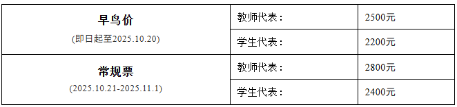 备注:会议期间住宿及交通费用自理。关于注册退费问题的说明:1)如有退款需求,相关事宜必须在2025年10月20日前申请办理,组委会将从缴费金额中扣除300 RMB/人作为相应的退款手续费;2)2025年10月20日后组委会将不办理任何退款,如报名参会者由于特殊原因不能出席,可指派他人参加,并在2025年10月25日前通知组委会更新相关注册信息。