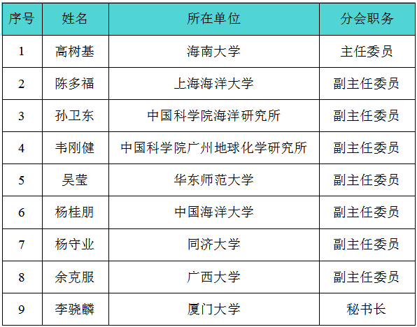 会议学术委员会由中国海洋学会海洋化学分会第四届委员会主任委员、副主任委员和秘书长组成,名单如下(排名不分先后):