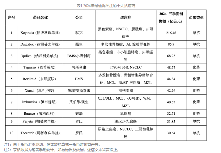 在这里,我们将根据2024年销售数据和预期的市场动态,向大家介绍2024年最值得关注的十大抗癌药物。