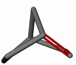 100 年来,在桥头位置具有双键的桥接有机分子(此处显示为两条红色线)一直被认为过于紧张而无法制造,但这并没有阻止化学家的尝试。而今年,他们终于成功了(Science 2024, DOI:10.1126/science.adq3519)。这些结构太不稳定而无法分离,但研究人员将它们用作环加成反应的中间体,以创建复杂的 3D 结构。
