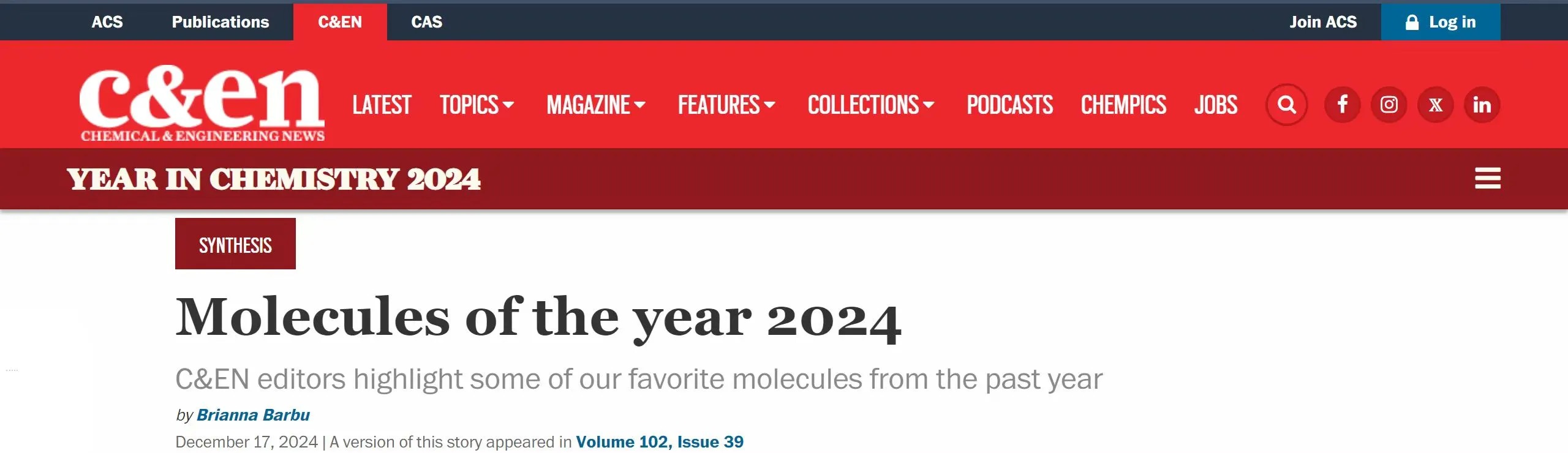 您喜欢哪一个呢?原文链接:https://cen.acs.org/synthesis/Molecules-year-2024/102/i39