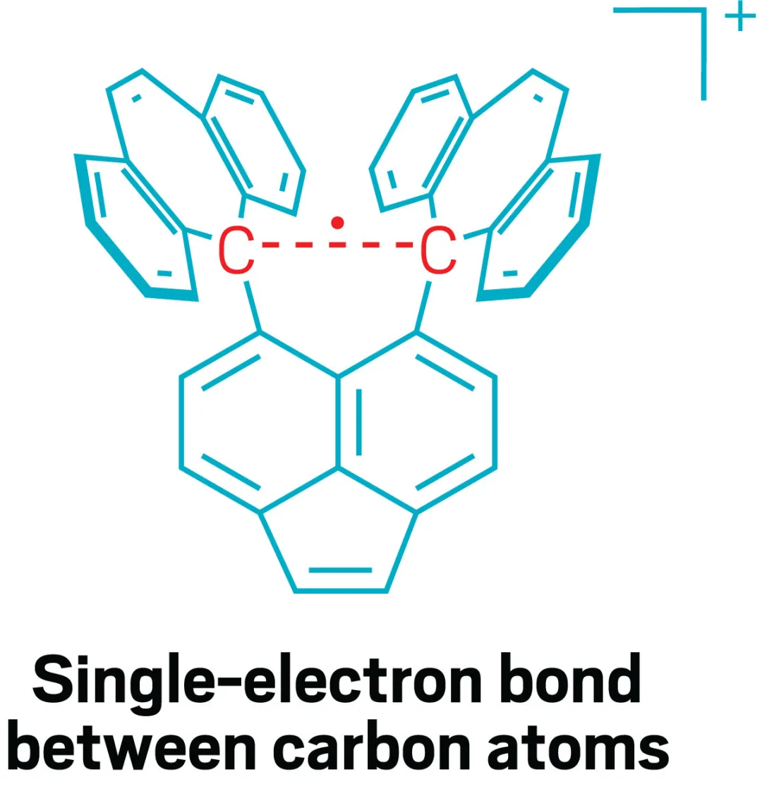 Lewis于1916年首次提出了两个原子共享一对电子的概念,随后Langmuir于1919年将其命名为“共价键”,这一概念在理解化学键方面仍然具有重要意义。随后,诺贝尔奖获得者Pauling提出了一个概念,即两个原子之间共享一个未成对电子的共价键(“单电子σ键”)。90 多年后,化学家们已经通过实验证实了它的存在 (Nature 2024, DOI:10.1038/s41586-024-07965-1)。他们利用了六苯乙烷(HPE)分子另一个重要特征 - 中心C-C键因周围芳基形成的空间位阻而被伸长(>1.6 Å),键伸长又导致了HOMO能级的提高。基于此,他们通过具有伸长C-C单键六苯乙烷(HPE)的单电子氧化分离出具有C•C单电子σ键的化合物,再经单晶X-射线衍射分析、拉曼光谱以及密度泛函理论计算证实了C•C单电子σ键(100 K下为2.921(3) Å)的存在。