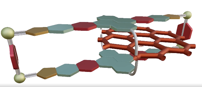 字面意思,这台分子机器在盒子里思考!长边是两端带有铱络合物的多环芳分子,短边是吡嗪分子(Angew. Chem., Int. Ed. 2024, DOI: 10.1002/anie.202318829)。客体分子 — 冠烯 — 适合内部,当扁平分子从一端到另一端旋转时,π-电子相互作用将其保持在外箱内。这种类型的穿梭可以用作未来分子开关的基础。